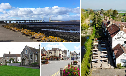Almondsbury, Alveston, Aust, Easter Compton, Elberton, Falfield, Littleton-upon-Severn, Old Down, Oldbury, Olveston, Pilning, Rockhampton, Rudgeway, Severn Beach, Stone, Thornbury, Tockington, and Tytherington
